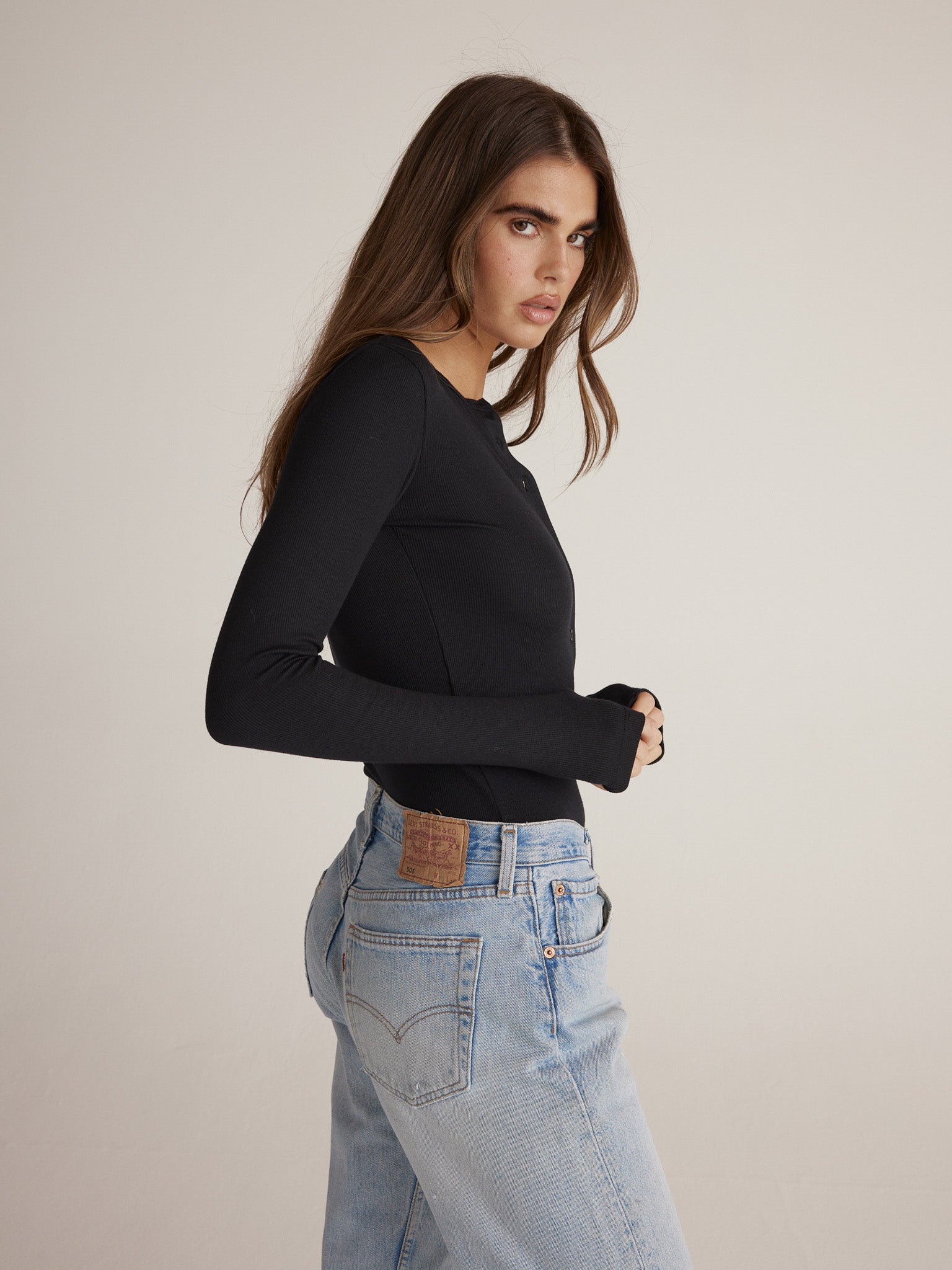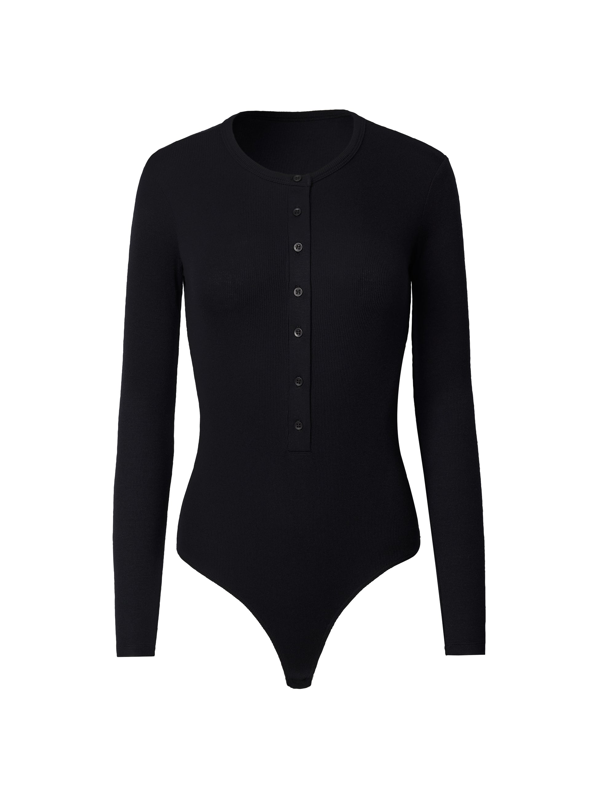 The henley bodysuit we all have dreamt of; ANNIE is made of a stretch ribbed fabric that oozes comfort. The modal & spandex combination wraps your body in sheer buttery softness and moves with you from day to night. The buttons along the front are fully functional, although we do love a deep unbuttoned look. With a snap closure thong bottom, this style tucks into you bottoms effortlessly.