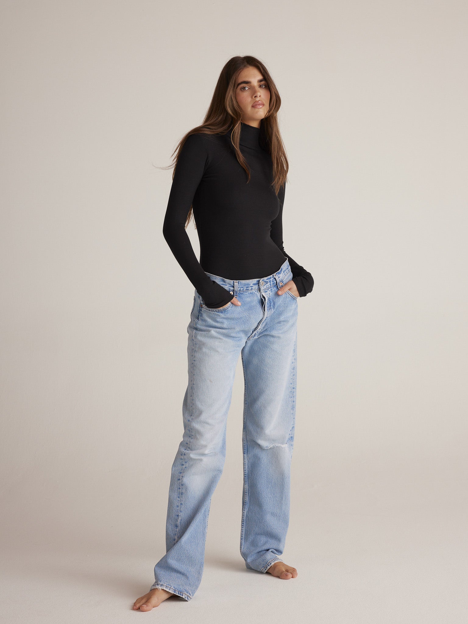 ORLEE, our classic turtleneck style, is the chicest of the bunch with exaggerated long sleeves and ultra fitted body. ORLEE is made of a ribbed fabric that is beyond soft and comfortable, that once put on, feels like second skin. With a snap thong closure to seal the deal, ORLEE effortlessly tucks into anything you pair it with.